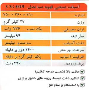 ![]() | آسیاب صنعتی قهوه صبا Hp 1/2 موتور نیم اسب | ![]() |
